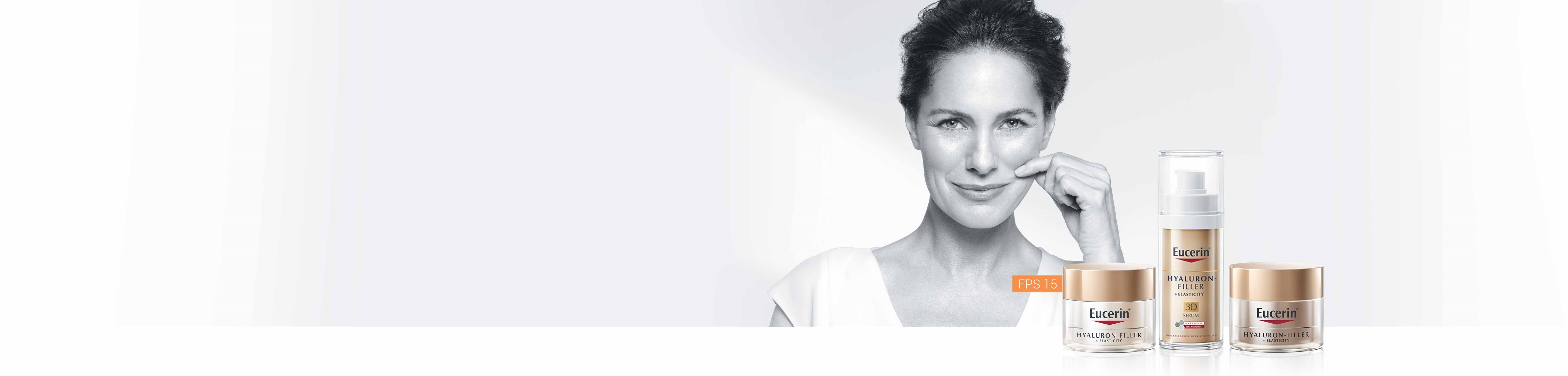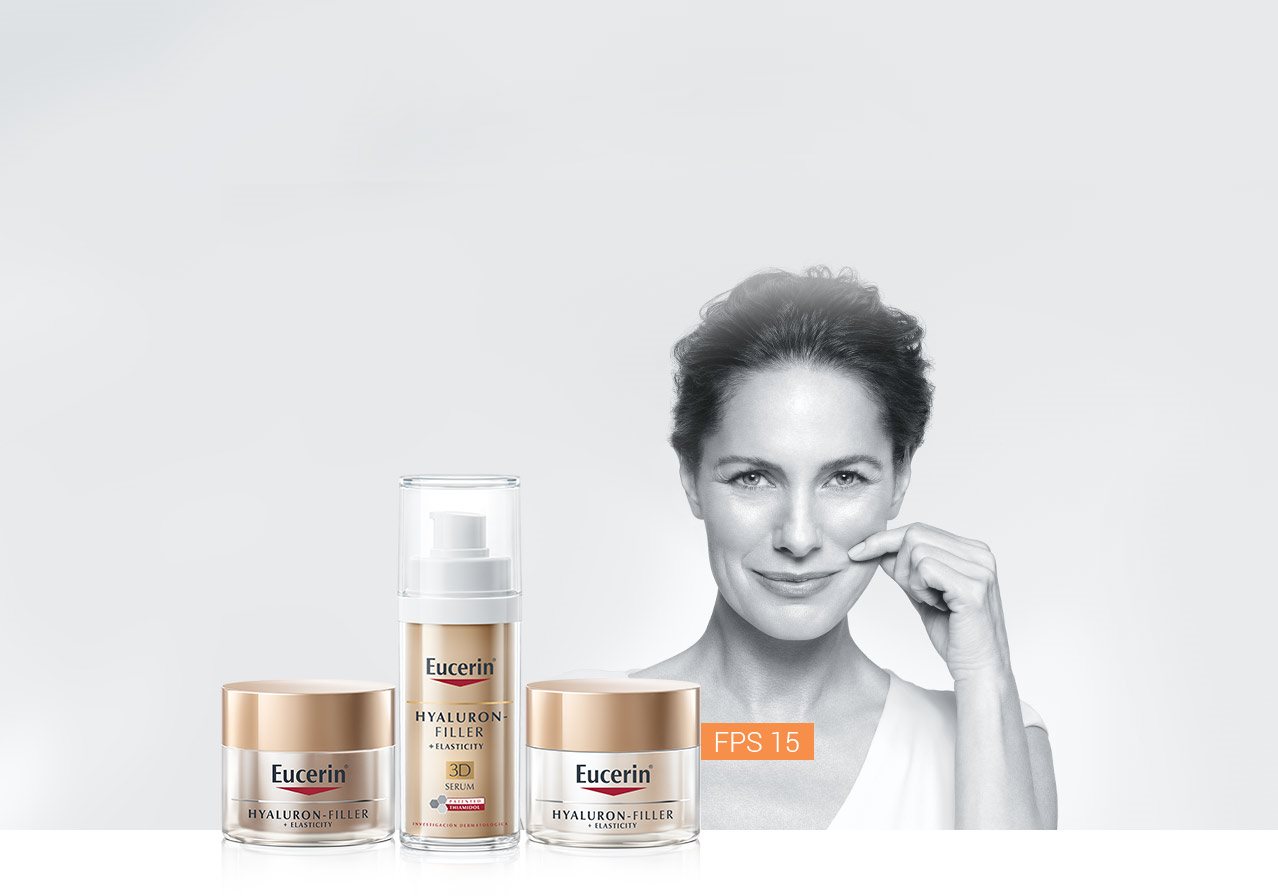 La línea HYALURON-FILLER + ELASTICITY de Eucerin está formulada especialmente para enfrentar estas inquietudes y contrarrestar los signos de la edad. Tanto las crema de día y la de noche de la línea contienen Arctiina (un principio activo demostrado, que acelera la renovación del colágeno en las células de la piel) y Silimarina (un potente antioxidante que protege el colágeno y la elastina de la degradación y mejora la circulación en la piel a nivel celular). La fórmula también contiene Ácido Hialurónico para rellenar de forma notoria las arrugas. Los productos de la línea se complementan con un aceite facial suavizante, rico en aceites esenciales.